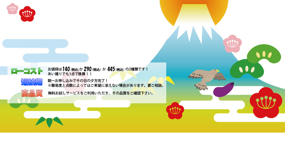 超激安で短納期!朝一お申し込みでその日の夕方完了(難易度と点数によってはご希望に添えない可能性があります。要ご相談)でハイクオリティな仕上がりとなっておりますので是非一度お試し下さい! まずはご気軽にご連絡下さい!